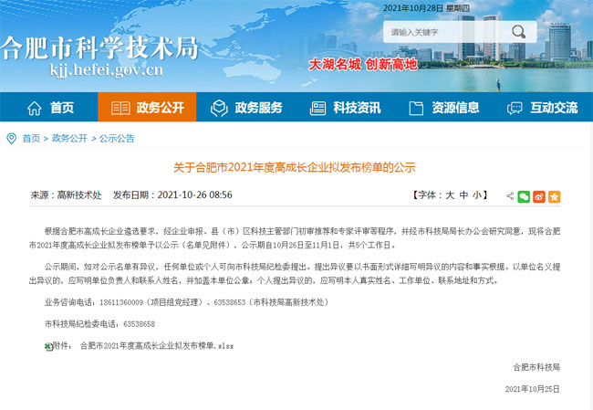 根據(jù)合肥市高成長企業(yè)遴選要求,經(jīng)企業(yè)申報、縣(市)區(qū)科技主管部門初審推薦和專家評審,并經(jīng)市科技局局長辦公會研究同意,安徽世綠環(huán)保科技有限公司成功入選合肥市2021年度高成長種子企業(yè),公示如下: