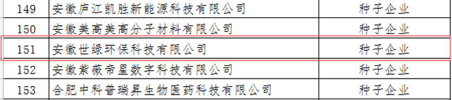 安徽世綠環(huán)??萍加邢薰境晒θ脒x合肥市2021年度高成長企業(yè)