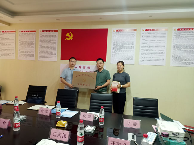 會(huì)議在莊嚴(yán)的國(guó)歌聲中開(kāi)始,首先興園社區(qū)權(quán)新同志宣讀了關(guān)于同意成立中共安徽世綠環(huán)??萍加邢薰局Р课瘑T會(huì)的批復(fù)文件,并由社區(qū)何軍同志為新成立的支部頒發(fā)黨牌并贈(zèng)送了黨報(bào)黨刊。隨后新成立的黨支部進(jìn)行了第一次全體黨員大員及支部黨委書(shū)記的選舉。經(jīng)過(guò)不記名投票,查宏偉同志以全票當(dāng)選為支部委員會(huì)黨委書(shū)記。