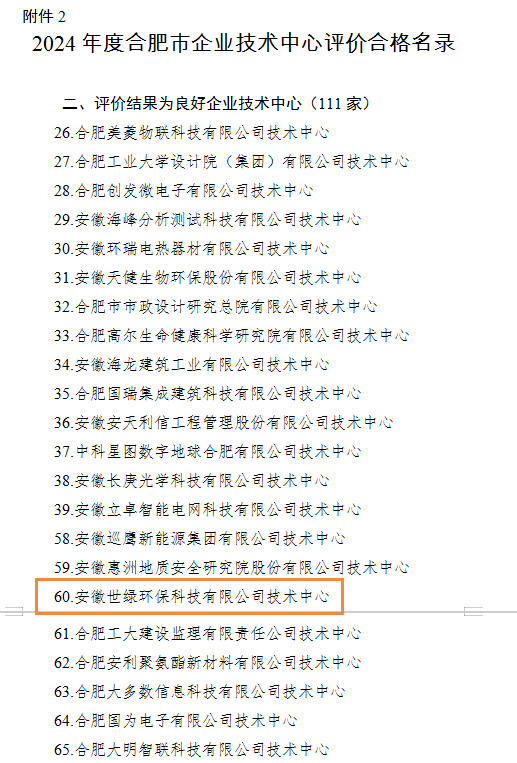 安徽世綠環(huán)保科技有限公司技術(shù)中心通過(guò)評(píng)價(jià)